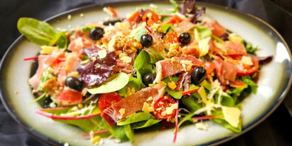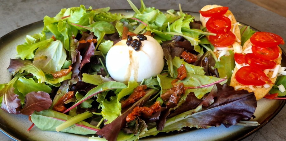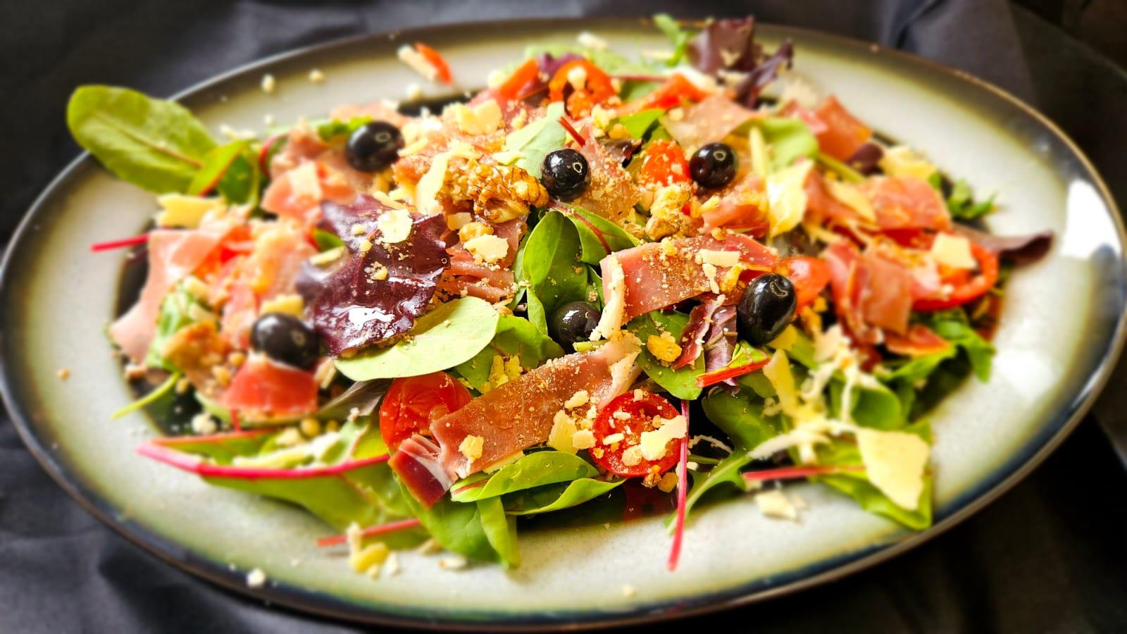 (mix sez. salata, mozzarella, orasi, grana padano, pršut, cherry rajčica)