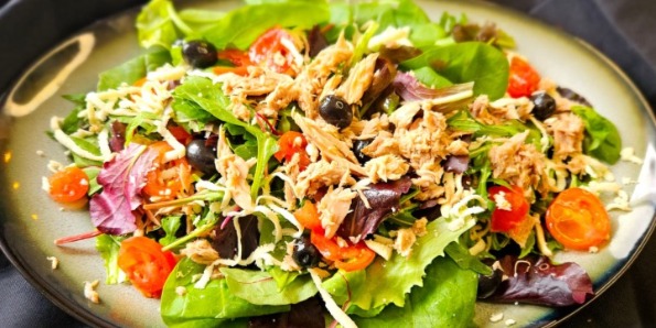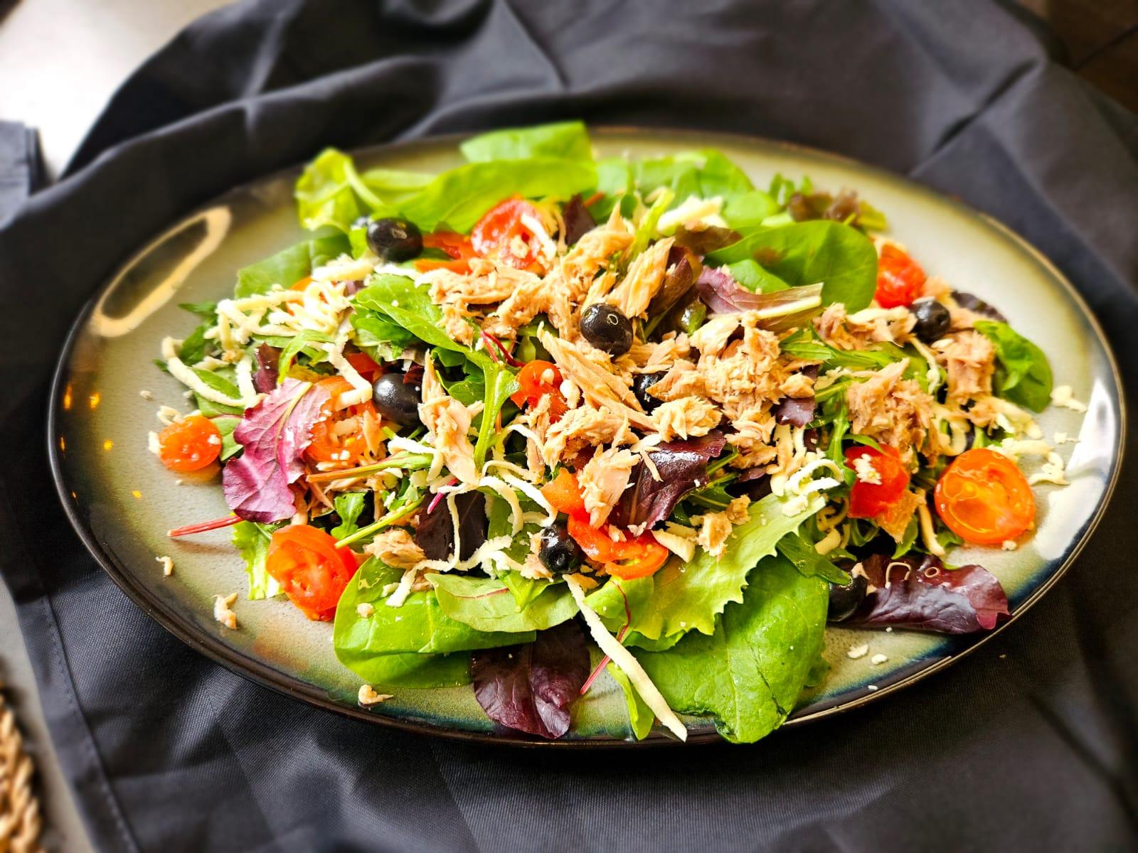 (mix sez. salata, cherry rajčica, kapari, limun, masline, losos, grana padano)